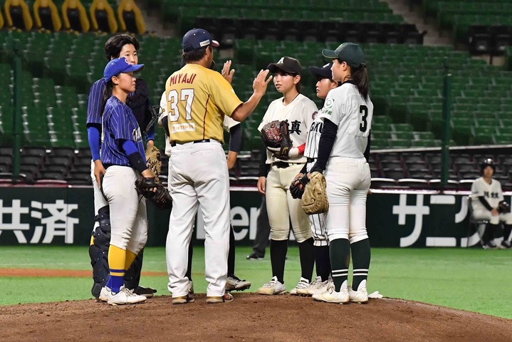 また、決勝戦の前には、松田宣浩氏率いるOBチームと、女子野球選抜チームのエキシビジョンマッチを実施いたしました。OBチームには、ホークスOBの森福允彦氏や、新垣渚・嘉弥真新也らアカデミーコーチが出場。結果は3-1でOBチームが勝利しました。