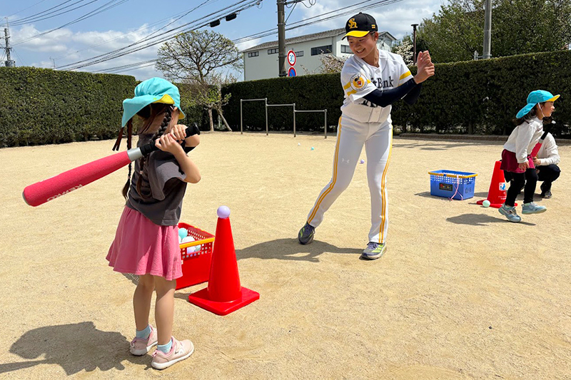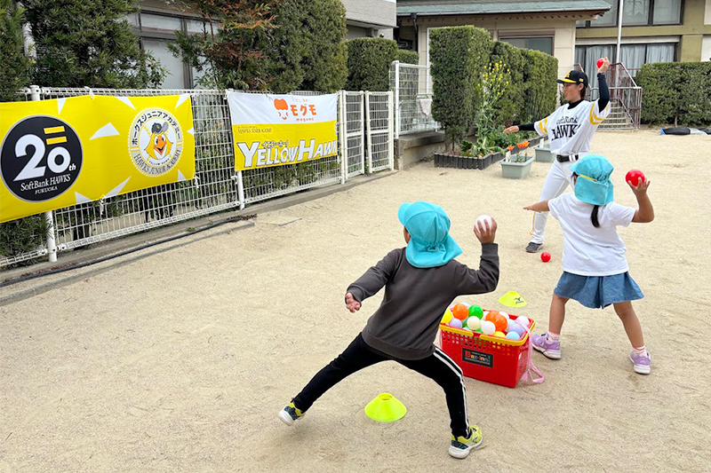 野球的アプローチでの運動を行うことで、体を動かすことの楽しさを伝えております。